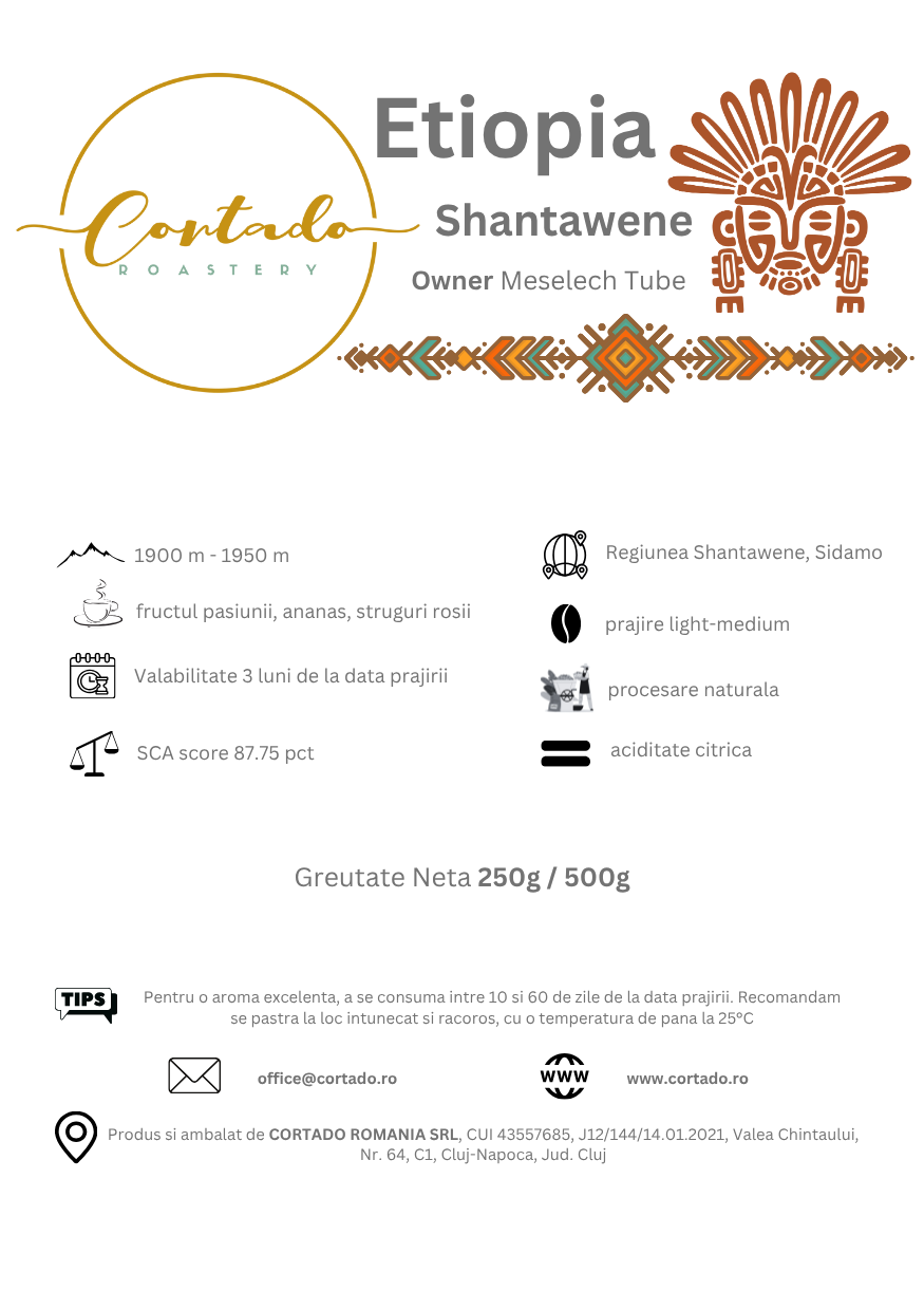 Meselech Tube este una dintre femeile care dau sens cafelei etiopiene de origine, cultivând cu pasiune și perseverență în regiunea Sidamo Bensa Daye încă din anii 1980. Moștenind ferma Shantaweyne de la familia sa, Meselech a transformat-o într-o sursă de susținere pentru cei șase copii ai săi, dintre care trei lucrează alături de ea. Dorința ei este ca numele său și cafeaua pe care o produce să fie recunoscute la nivel internațional, motiv pentru care investește constant în cultivarea și procesarea cafelei de calitate specialitate.
